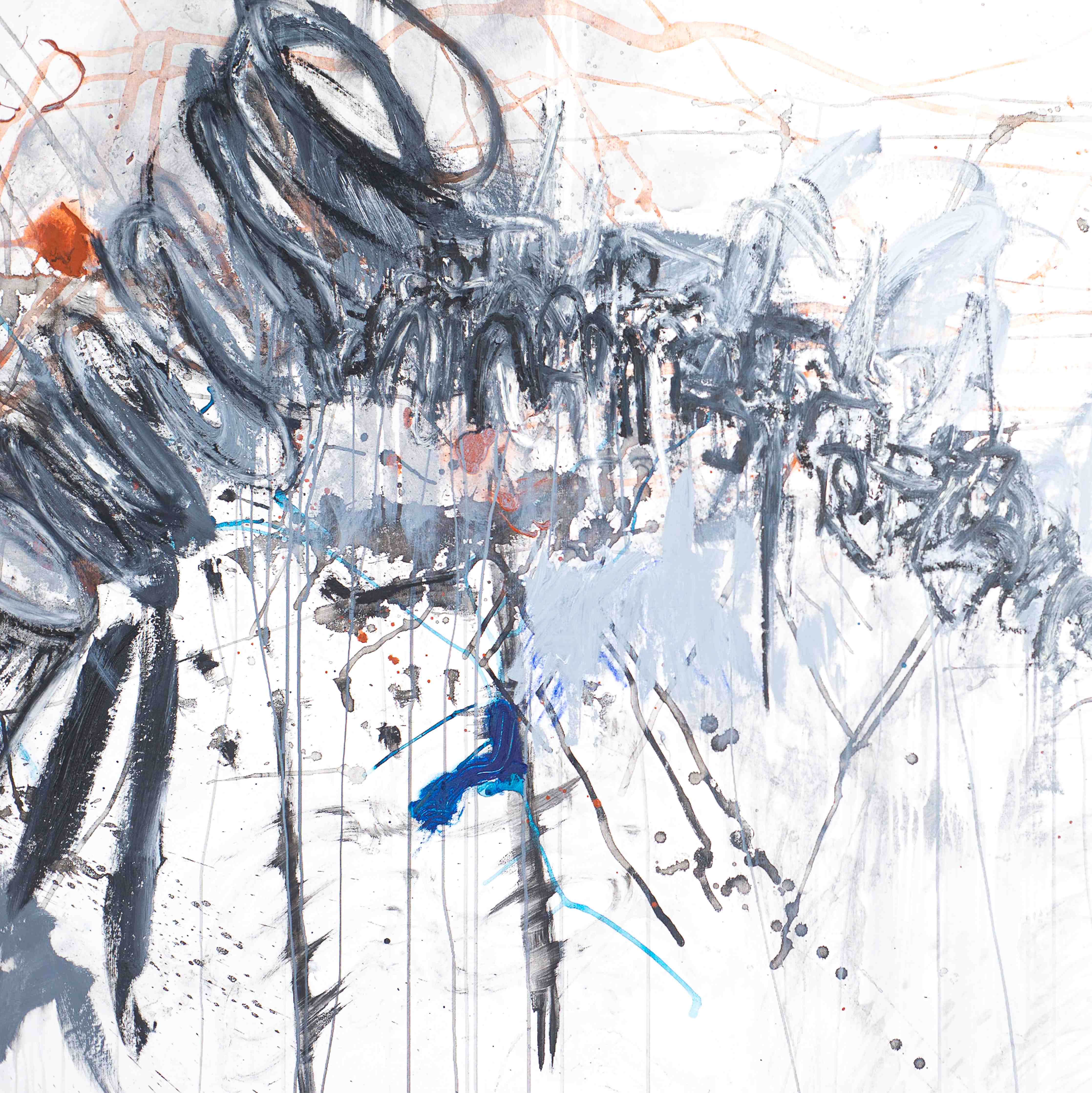A mostra reúne trabalhos marcados por fluxos abstratos em que leveza e intensidade conversam — ora se tocando, ora se afastando, como quem percorre caminhos internos com sinceridade. As obras surgem em grandes telas e também em assadeiras de alumínio, suportes que ampliam o jogo de texturas e possibilidades. Nanquim, tinta acrílica e pigmentos naturais diluídos em água e óleo compõem o vocabulário sensorial que Lu apresenta ao público.