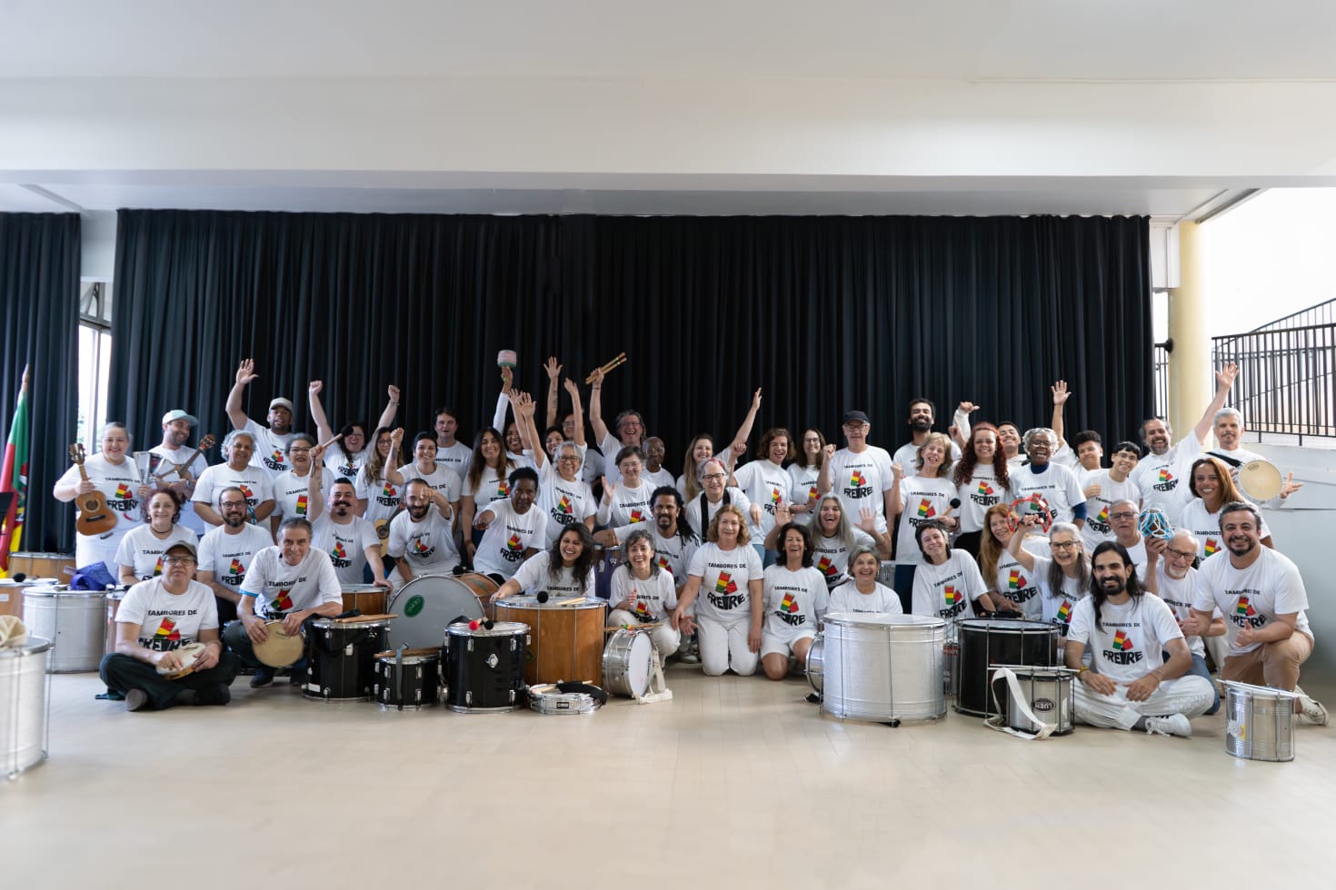 Criado em 2019, o coletivo Tambores de Freire nasceu como um espaço de prática e estudo da música popular percussiva em grupo. O projeto é coordenado pelo professor Nilson Tòkunbò e, desde o início, se propôs a acolher diferentes trajetórias e idades, oferecendo oficinas e disciplinas eletivas de percussão, canto popular, cavaquinho, contrabaixo e musicalização para jovens, adultos e idosos.